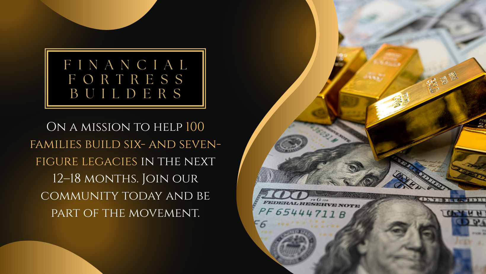 Financial Fortress Builders is here to help you create lasting financial freedom through tax strategies, credit building, real estate, business growth, insurance, and smart investments like annuities and IRAs. We’re on a mission to help 100 families build six- and seven-figure legacies in the next 12–18 months.